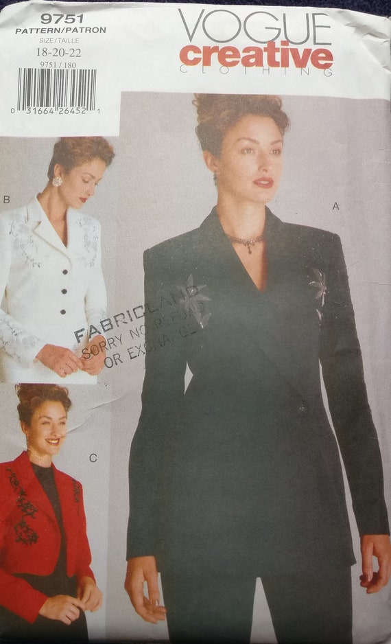 Vogue Creative Clothing Misses Jacket Pattern 9751 Plus Size Etsy